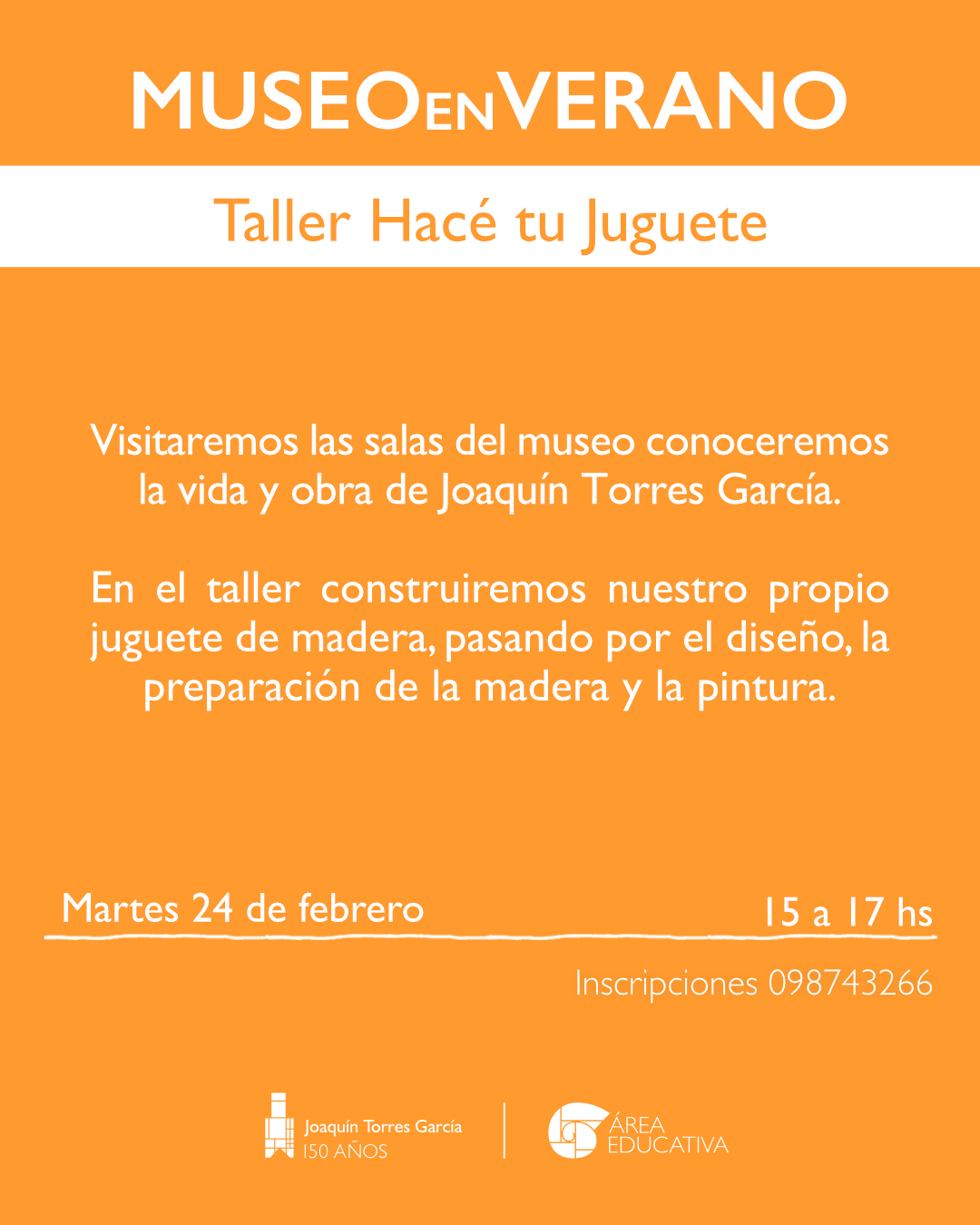 Venía ajugar, explorar, crear y conocer más sobre Joaquín Torres García. En encuentros de dos horas compartiremos actividades en las salas y en el taller. Cada día será una oportunidad para el disfrute y para compartir. Algunas actividades son para infancias y otras son propuestas familiares integradas.